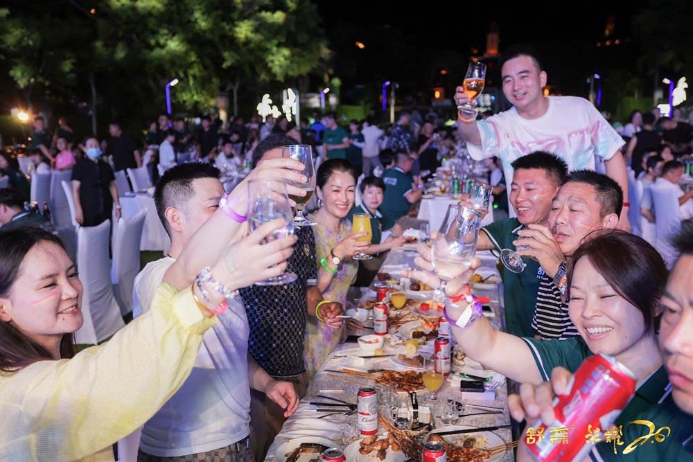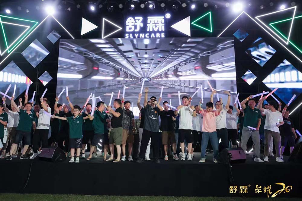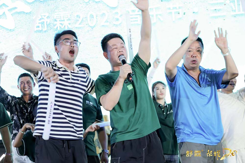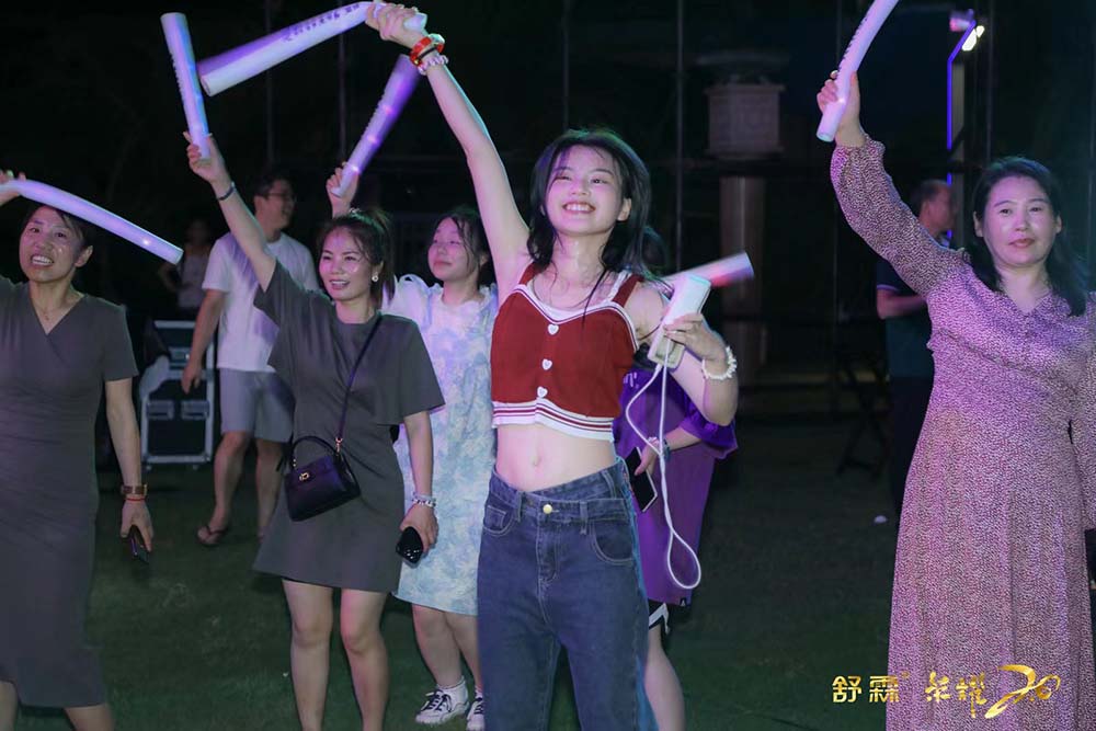 晚上夜色降临,配合现场氛围灯光,舒霖首届音乐节举办!现场设置打卡拍照区,与舒霖更亲密。迎合音乐节氛围,签到入场的每位舒霖家人佩戴定制发光手环,并设置手绘涂妆区,体现舒霖音乐节的个性与张扬。草坪布置BBQ自助餐,舒霖家人自行拿取烤好的食物,至中心区食用。现场特邀乐队,引燃全场,融入乘风破浪的氛围。氛围噪起时,DJ登场,电子音乐嗨翻全场,与舒霖家人一起蹦迪。设置自由嗨唱环节,登上舞台展现自我。热闹逐渐归为平静,星星的光、月亮的光、舒霖音乐节的灯光,交织在一起,美好永不散场。此次2023年舒霖第四届文化节圆满结束。