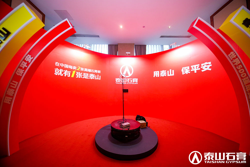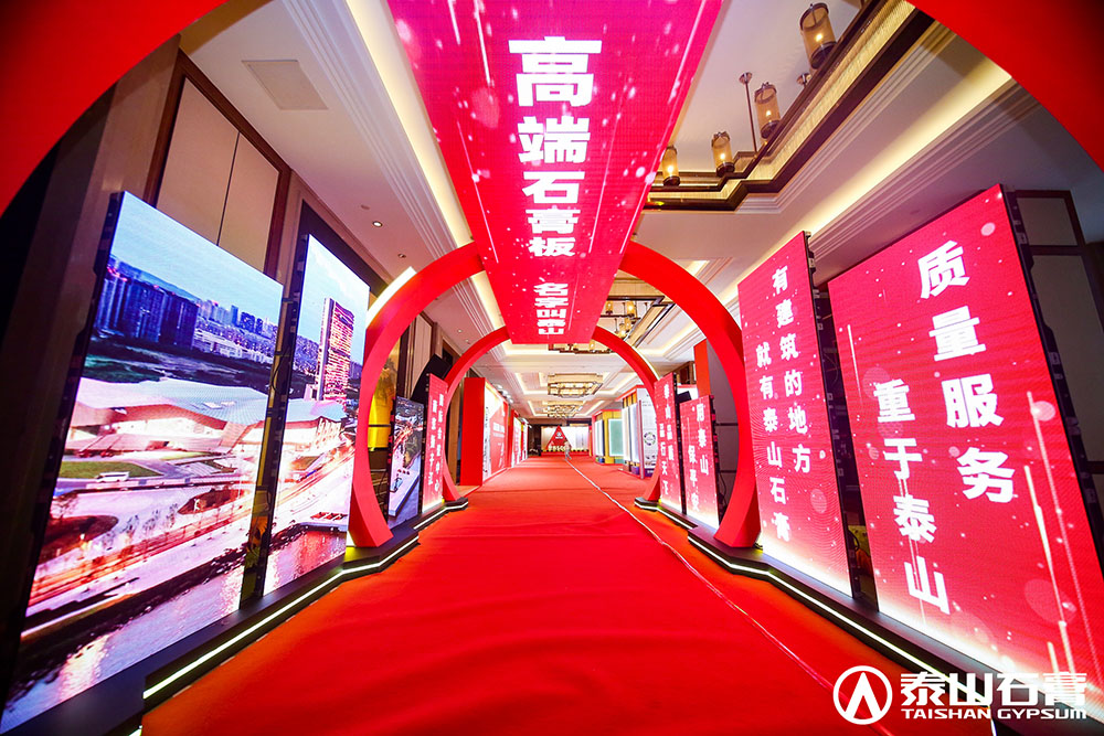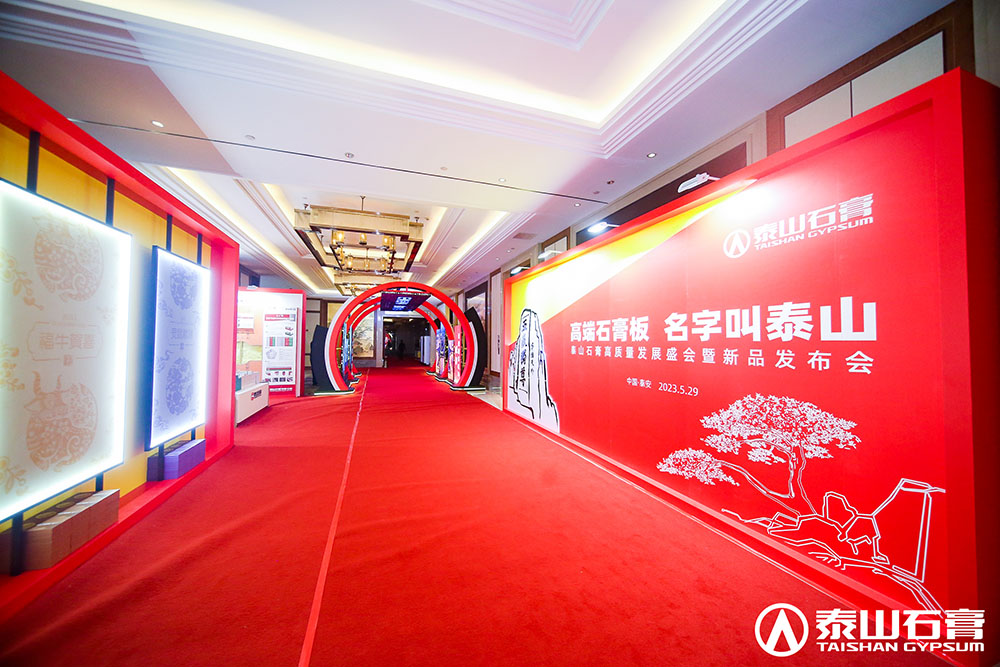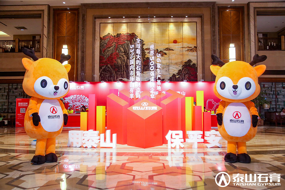 “高端石膏板 名字叫泰山”,2023年5月29日,泰山石膏高质量发展盛会暨新品发布会在山东泰安顺利召开 共同见证泰山石膏开新程,创新高,向“做世界一流的新型建材制造商”更进一步!全国各地重量级嘉宾及600余位高端石膏板客户 共襄此次盛会,莅临现场参观指导。走过大事记长廊,回望高质量发展之路与取得的成绩 泰山石膏不断完善全国布局,凭借非凡实力先后获得多个行业内荣誉称号,为品牌持续赋能。作为泰山石膏发展道路上的领航者和新发展规划的设计者,泰山石膏董事长尹自波深切解读了泰山石膏的高质量发展之路 泰山石膏已从规模效益型向质量效益型、技术效益型、品牌效益型转变,实现了高速发展到高质量发展的跨越。 此次大会泰山石膏吉祥物——泰山福鹿惊艳亮相,焕发品牌新活力。晚宴准备就绪,礼仪呈上酒杯,嘉宾及领导们共同举杯祝福 正式开启泰山平安文化年宴会。